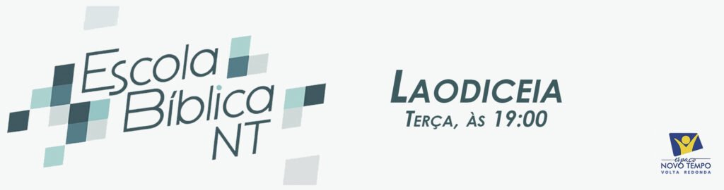 Na próxima semana vamos estudar sobre a sétima e última igreja do Apocalipse. Aproveite e leia Ap 3:14-22 e se prepare para nos aprofundarmos em mais um período da história da igreja e de como isso afeta nossa vida com Deus hoje. Próxima terça, às 19:00 no Espaço Novo Tempo de Volta Redonda. Rua Primeiro de Maio, 105 – Aterrado, Volta Redonda/RJ.